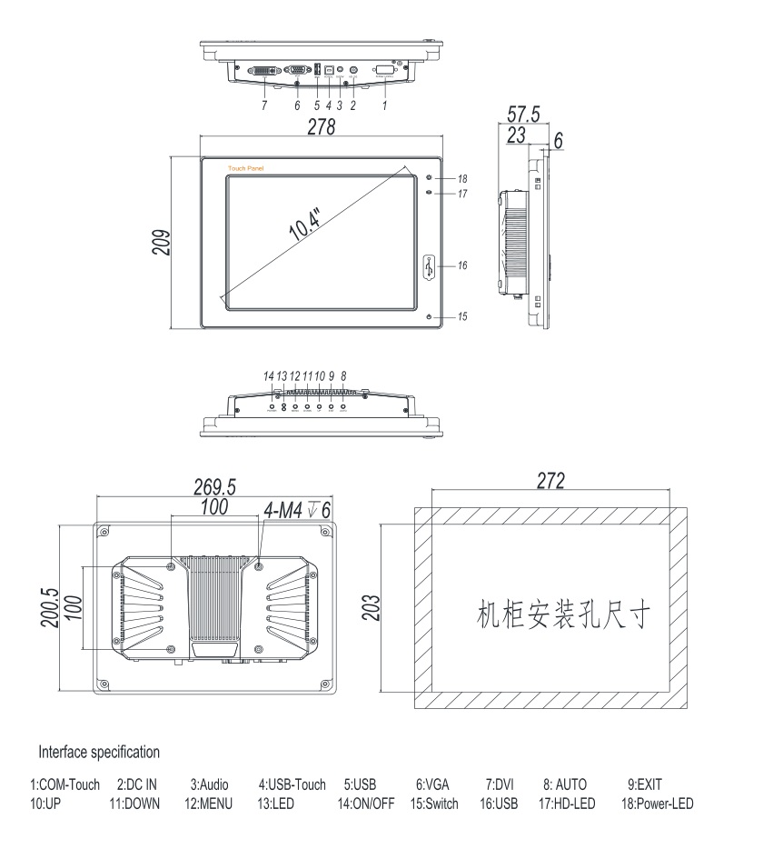 TD-104M工業顯示器采用模塊化結構設計,整機流線形箱體設計和人性化外觀設計,集成了超高亮度液晶屏和工業電阻觸摸屏,具有更好的靈敏度、透光性和較長的使用壽命,同時具有不怕灰塵、油污和電磁干擾等特點。 堅固美觀的全模具壓鑄成型面板,配合高溫五線電阻觸摸屏,高亮寬溫LED背光液晶屏,符合IP65防護等級。多種安裝方式,適用于MES、環保、電力、石油化工等多種通訊要求的應用場合。