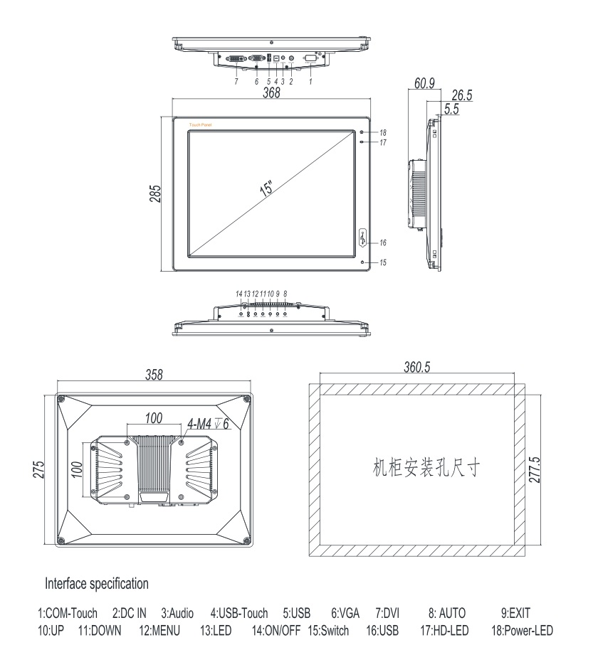 15寸工業(yè)顯示器TD-150M